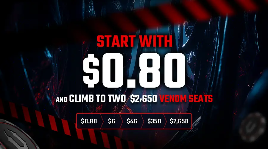 For only $0.80, you’ll battle through four Survivor Flip Steps, climbing toward a $2,650 ticket to the Dual Mystery Bounty Venom tourneys (NLH or PLO).