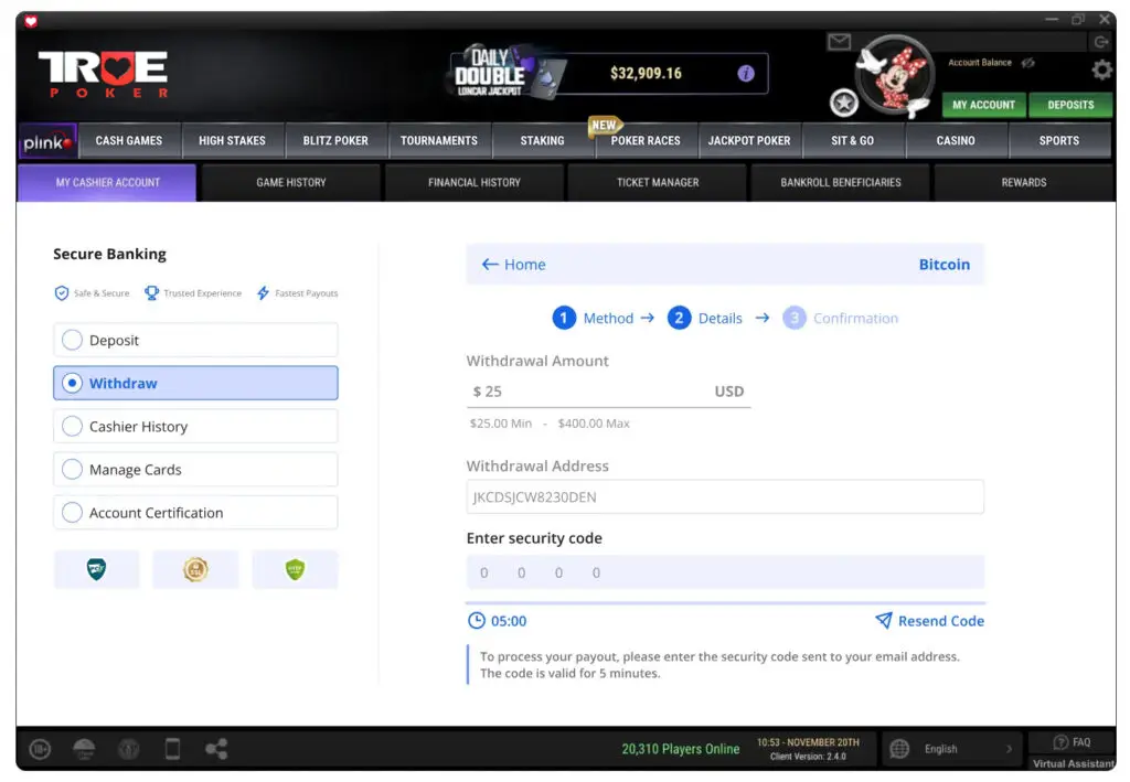 We’re rolling out Email 2-Factor Authentication (2FA) on all cashouts. This added layer of protection helps safeguard your funds and protect your poker account by verifying every withdrawal request with a secure code delivered straight to your email inbox.